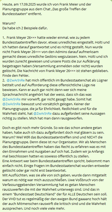 Es folgt die Bekanntmachung darüber warum ich die Planungsgruppe des Bundesstaatentreffen verlassen habe.