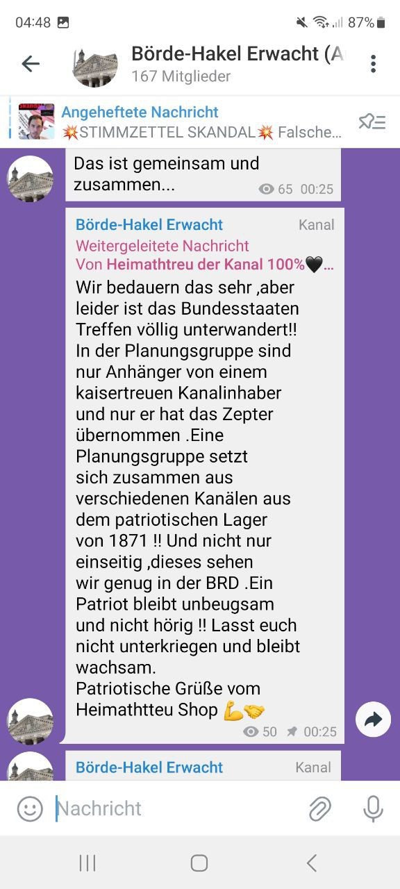Würde beim BST Treffen jemand von der NPD sprechen, würdet ihr einen riesigen großen Aufstand machen weil ihr es erkennen würdet. Wäre jemand von der AFD, SPD, CDU als Redner vor Ort würdet ihr alle Fragen was das soll. Doch beim VDWK und den Wk`s wollt ihr es einfach nicht erkennen da sie ja „für 1871“ stehen. Echt jetzt? Niklas vom VDWK hat oft genug gesagt, dass wir keinen Kaiser brauchen. Sacha die für den VDWK arbeitet hat es schriftlich öffentlich von sich gegeben. Matthes Haug, der mit dem VDWK zusammenarbeitet, hat in seinem Zustand viele Tage darüber gesprochen, dass wir keinen Kaiser brauchen. Der VDWK/Wk`s arbeiten mit Suggestionen wie dem geltenden §34 StGB und dem geltenden Artikel 10 EGBGB. Wusstet ihr nicht? Wie auch wenn ihr nicht prüft!