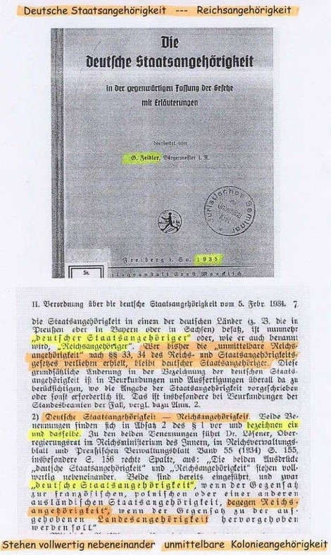 Sie wurde erstmalig verordnet am 05.02.1934 von Adolf Hitler. In der BRD wurde diese Verordnung zum Gesetz gemacht und als StAG (Staatsangehörigkeitsgesetz) benannt.