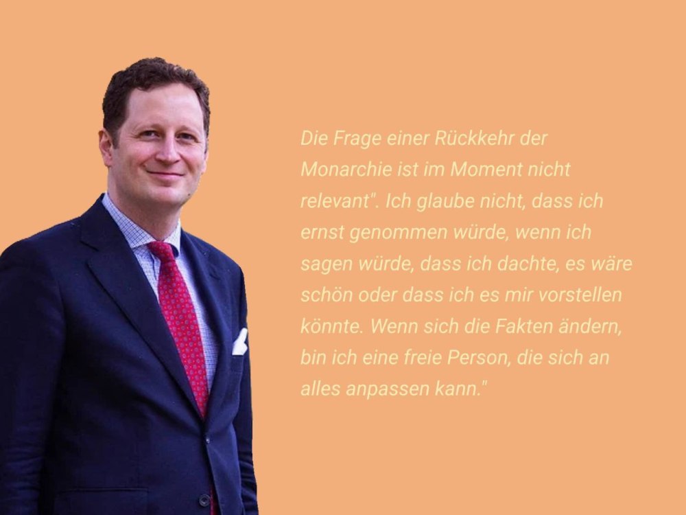 "Die Frage einer Rückkehr der Monarchie ist im Moment nicht relevant". Ich glaube nicht, dass ich ernst genommen würde, wenn ich sagen würde, dass ich dachte, es wäre schön oder dass ich es mir vorstellen könnte. Wenn sich die Fakten ändern, bin ich eine freie Person, die sich an alles anpassen kann."