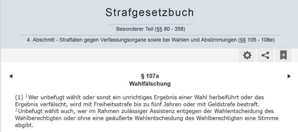 Und somit machen wir uns gemäß § 107a Strafgesetzbuch der BRD strafbar, wenn wir an einer Wahl in der BRD teilnehmen.