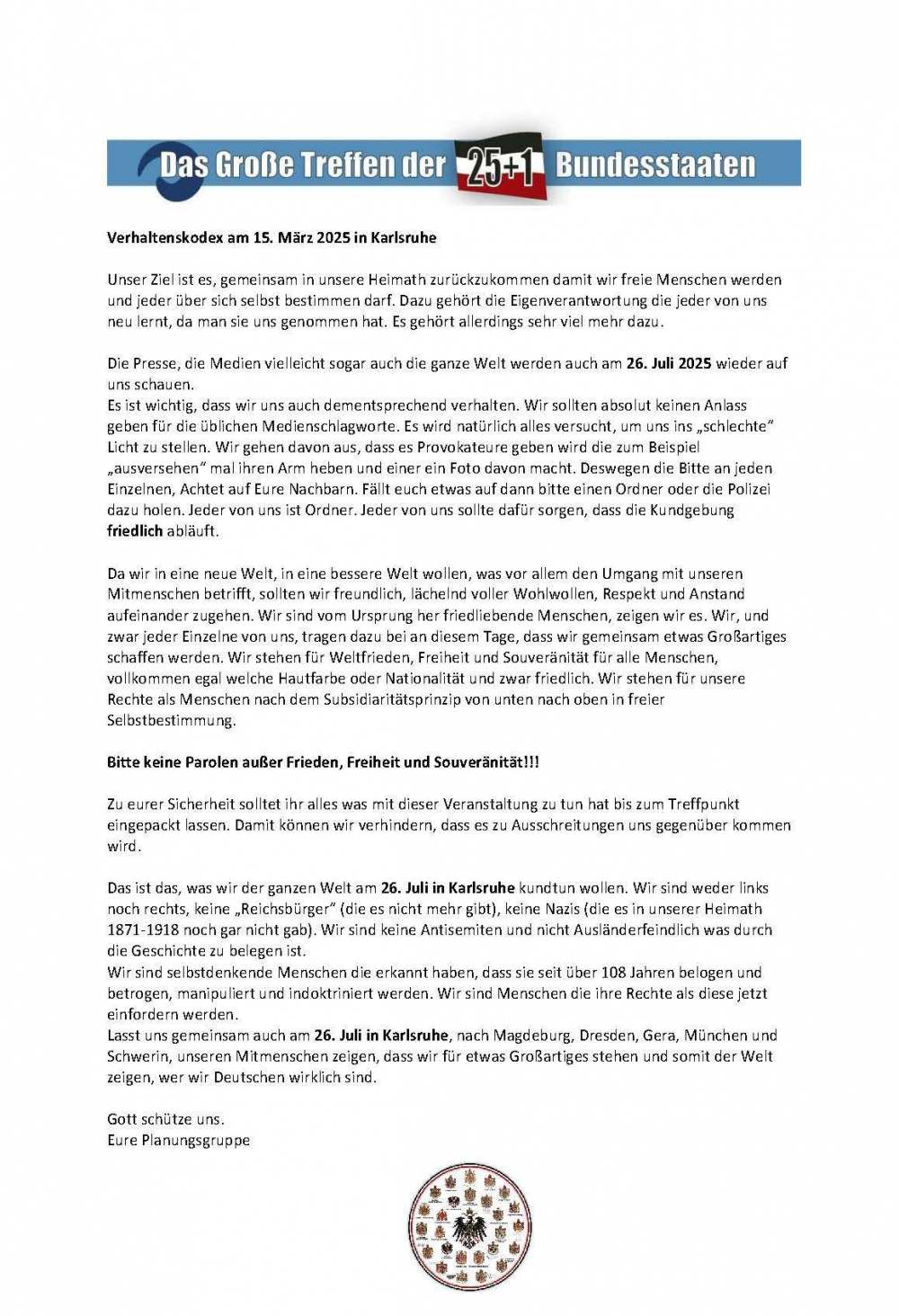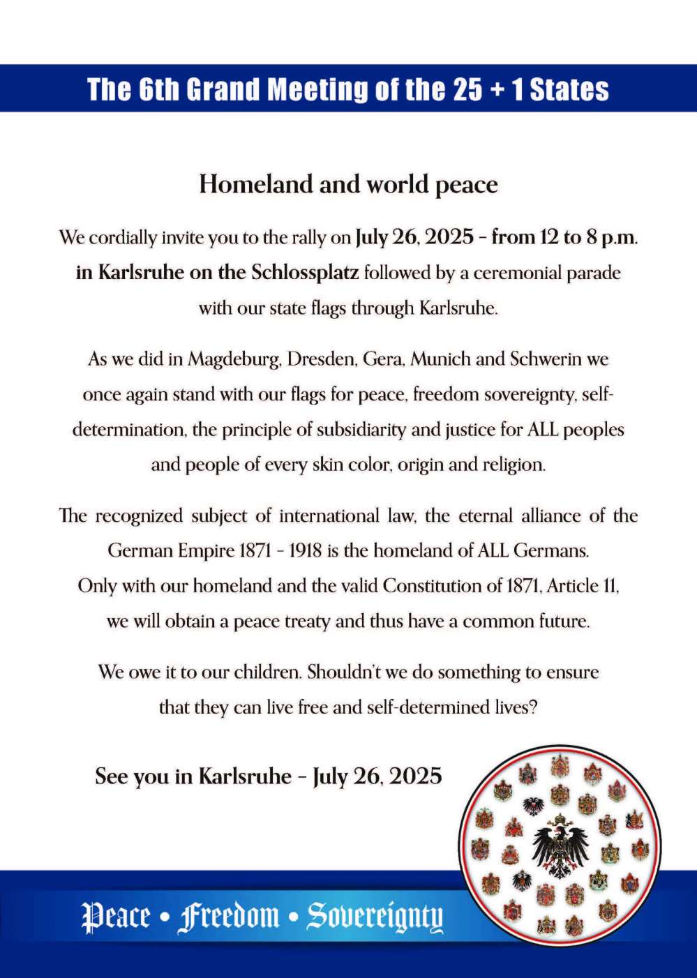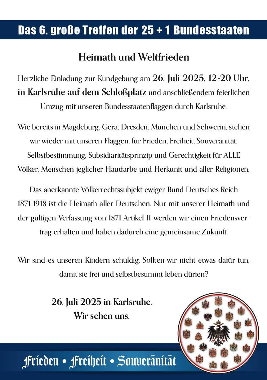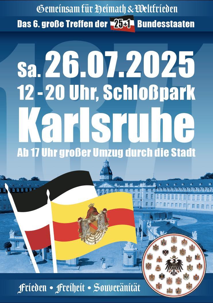 Unser 6. Bundesstaatentreffen findet am 26. Juli 2025 in Karlsruhe auf dem Schloßplatz statt.