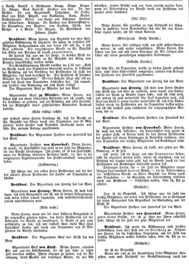 Für diejenigen, die behaupten, die Verfassung 1871 wäre nicht vom Volk. Siehe dazu das Reichstagprotokoll vom 10.12.1870, 12. Sitzung!