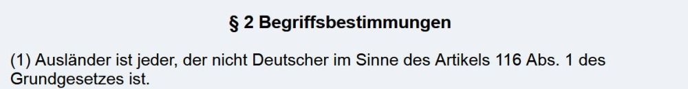 (1) Ausländer ist jeder, der nicht Deutscher im Sinne des Artikels 116 Abs. 1 des Grundgesetzes ist.