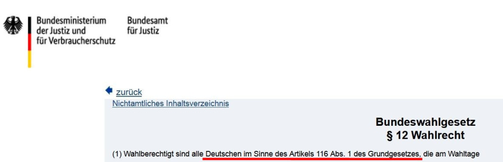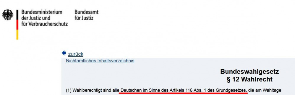 Wahlberechtigt sind alle Deutschen im Sinne des Artikels 116 Abs. 1 des Grundgesetzes.