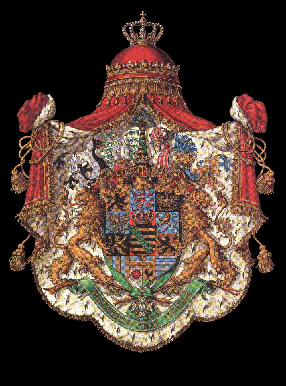 Die Landesfarben Sachsens sind seit Weiß und Grün und daß opulent königliche Wappen beinhaltet mit dem Spruch: „Providentiae memor“=„ Ich erinnere mich an die Vorsehung“,