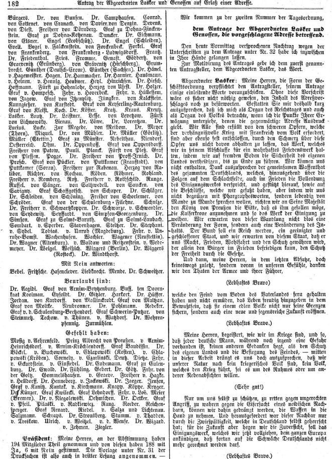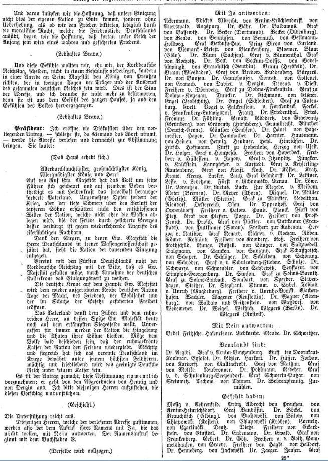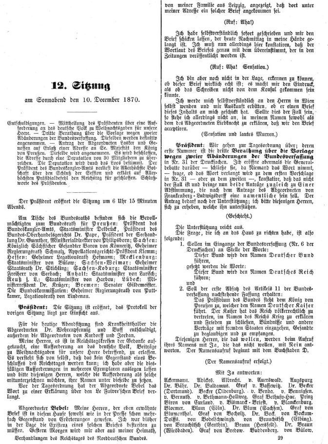 Für diejenigen, die behaupten, die Verfassung 1871 wäre nicht vom Volk. Siehe dazu das Reichstagprotokoll vom 10.12.1870, 12. Sitzung!